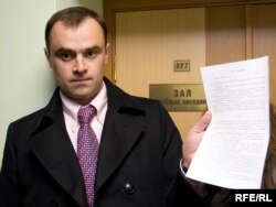 Адвокат Роман Головкин показывает копию постановления об условно-досрочном освобождении Светланы Бахминой