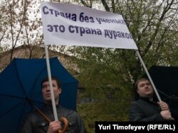 На митинге с поддержкой требований ученых выступили представители системной оппозиции: партии "Яблоко", "Правое дело", КПРФ, "Справедливая Россия"