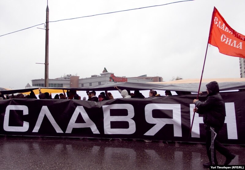 Акция националистов "Русский марш" состоялась в День народного единства в московском районе Люблино. Около 5 тысяч человек прошли по улице Перерва, скандируя националистические лозунги.