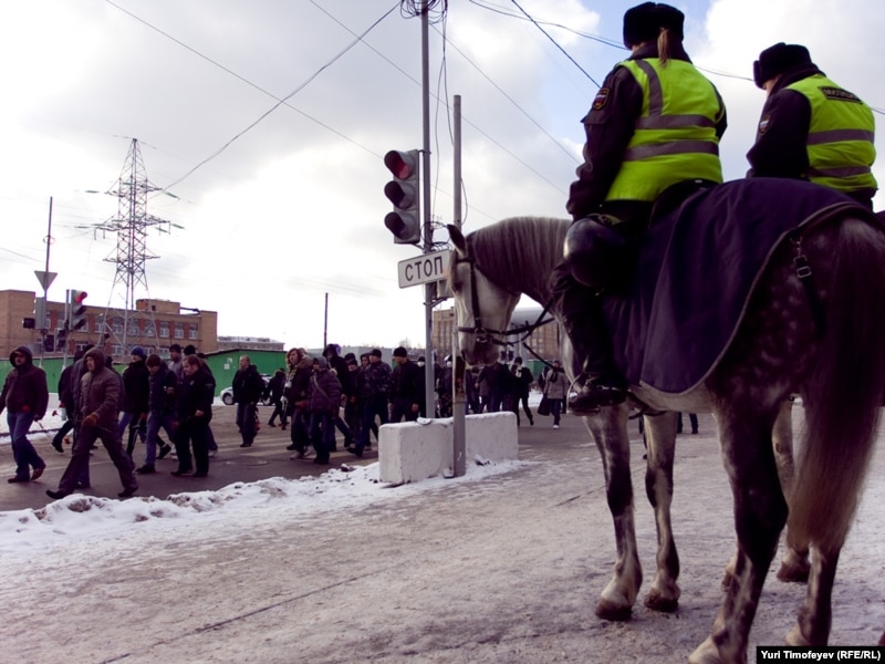 Несмотря на несогласованность акции, милиция полностью перекрыла Кронштадтский бульвар и не препятствовала собравшимся