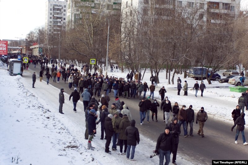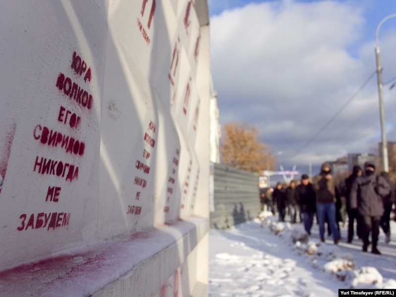 Корреспондент Радио Свобода работал на акции памяти Егора Свиридова, убитого 6 декабря в массовой драке спартаковского болельщика.