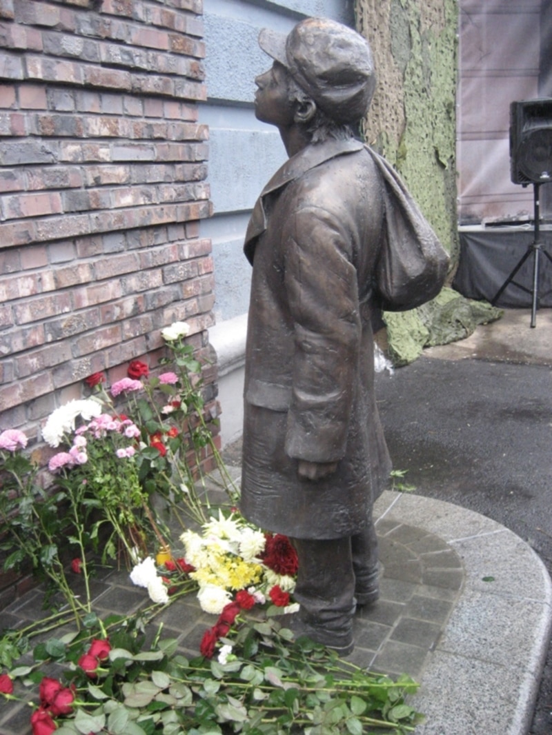 И другой памятник, тоже погибшим - это Бабий Яр в Киеве. Трагедия Бабьего Яра всем известна - почти сто тысяч было расстреляно в течение трех первых дней оккупации немцами Киева. 29 сентября был дан первый залп, и дальше эти залпы не прекращались, пока не было уничтожено такое количество безвинных людей, стариков, детей, старух.