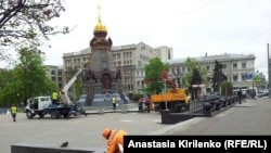 11:55 Тем временем, пока на Чистых прудах чистят памятник Абаю Кунанбаеву, на Китай-городе красят памятник героям Плевны и ремонтируют бордюр. Видимо, на борьбу с активистами вместо полиции брошены силы коммунальных служб Москвы. Рядом дежурит один автозак.