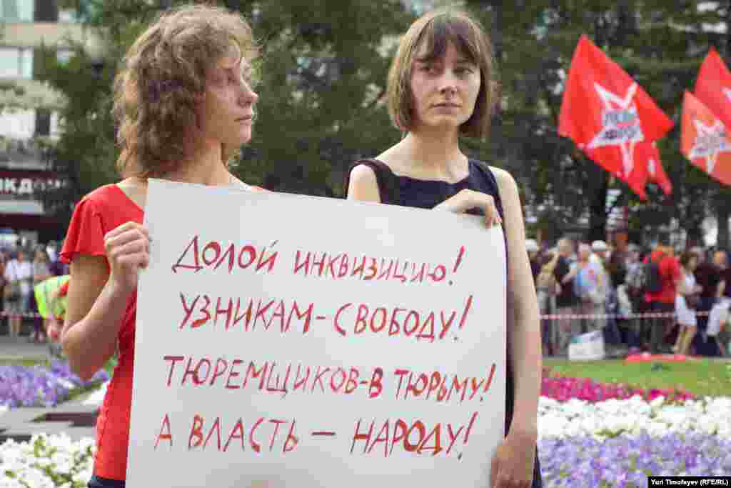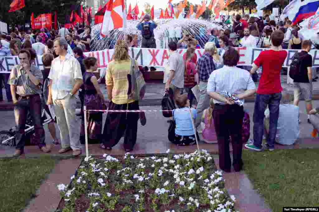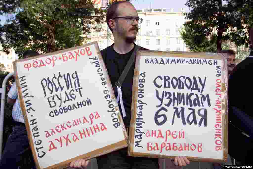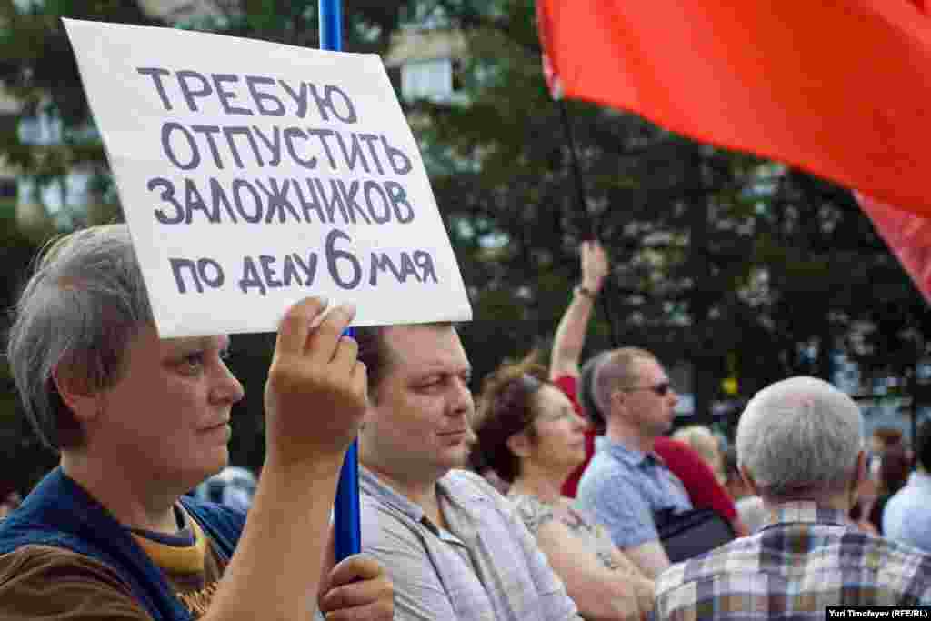 В Новопушкинском сквере в Москве проходит санкционированный митинг в поддержку узников 6 мая. Организатором митинга стал Комитет 6 мая.