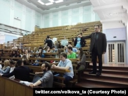 Как написала в твиттере утром в четверг студентка РГГУ Татьяна Волкова, "Стариков уже полтора часа вещает. Из аудитории потихоньку испаряются слушатели. Невозможно слышать по 50 раз: геополитика, Крым, либералы". Политолог приехал в РГГУ в рамках кампании по разъяснению студентам российских вузов "внутренней и внешней политики". Официально мероприятие называется "Сценарии будущего России. Лекция-дискуссия". Выступления лидеров "Антимайдана" уже состоялись в МГТУ имени Баумана, Финансовом университете при Правительстве РФ, РУДН, МГСУ, Институте государственного управления и права.