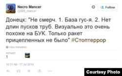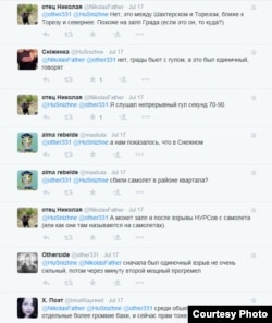 Сразу после того, как был сбит "Боинг", следовавший рейсом МН17, появилось множество версий случившегося – со стороны России, пророссийских сепаратистов, действующих на востоке Украины, и западных стран. Журналисты и следователи собрали многочисленные свидетельства очевидцев, которые соответствуют как украинской ("Боинг" был сбит зенитно-ракетным комплексом "Бук", находившимся к югу от города Снежное), так и российской ("Боинг" был сбит украинской стороной – либо истребителем Су-25, либо собственным "Буком", располагавшимся, скорее всего, у поселка Зарощенское) версии. Однако наиболее прямой и непосредственной информацией можно считать не интервью, взятые спустя недели и даже месяцы после случившегося, а записи в социальных сетях, сделанные утром и днем 17 июля 2014 года – непосредственно перед падением "Боинга" и сразу после него, до того, как стало ясно, что жертвами этого бессмысленного акта стали почти 300 невинных людей.