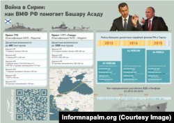 Как бы ни обстояло дело в реальности, именно поддержка России в последние 5 лет позволила Башару Асаду и подконтрольным ему силам одновременно бороться сразу с несколькими соперниками – сирийскими повстанцами, умеренными исламистами, сирийскими курдами и "ИГИЛ" – и при этом не потерпеть окончательного поражения. Так считает Антон Павлушко, один из активистов волонтерского проекта InformNapalm, цель которого – выявлять в открытых источниках и предавать гласности доказательства российской милитаристской активности на Украине, в Сирии и других странах мира. По словам Павлушко, Москва в последнее время резко нарастила объем военной помощи Дамаску – об этом можно судить по статистике проходов больших российских десантных кораблей через Босфор за последние годы и их загруженности: