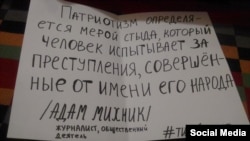 На самом деле до сегодняшнего дня у акции был крошечный отклик. Но я подружилась с девочкой, которая сейчас тоже является моей соратницей по "тихому пикету". В Москве с недавних пор еще две девушки путешествуют с пикетами. Сегодня мне в личные сообщения на "Фейсбуке" пришло еще несколько просьб. Люди пишут: можно ли присоединиться к акции? Я, естественно, говорю, что можно. С этими девушками мы теперь дружим на почве "тихого пикета".