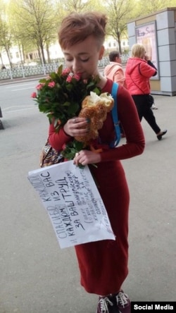 Саша Алексеева, продолжательница дела Дарьи Серенко, проводит "тихие пикеты" по-другому