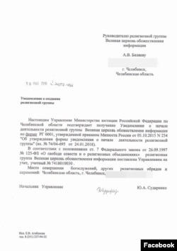 В конце января студенты подали уведомление о начале деятельности новой религиозной группы в Министерство юстиции по Челябинской области. В четверг прокуратура Тракторозаводского района Челябинска потребовала, чтобы Беляев явился для дачи показаний. Прокуратура подозревает, что представители "Великой церкви обожествления информации" занимаются миссионерской деятельностью и нарушают статью 5.26 КоАП РФ.