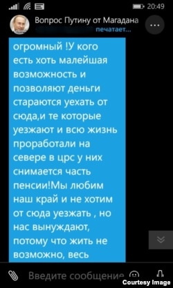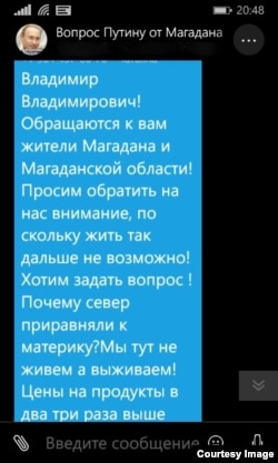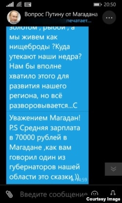 Магаданцы создали несколько групп в мессенджере Whatsapp и сочинили обращение к Владимиру Путину от лица жителей региона. А потом договорились, что отправят каждый со своего телефона СМС с одним и тем же посланием.