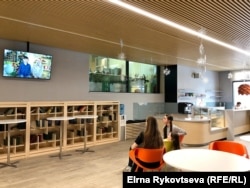 Столовая. Там мы заметили, что первые классы доходят аж до буковки "Ж". Нам сказали, что бывали времена, когда и 1-й "О" существовал. А всего в школе учится 800 человек. Попасть сюда может любой ребенок, живущий либо в совхозе, либо в московском районе Царицыно. Ну, не совсем любой. Нужно пройти тестирование. Это специализированная инженерная школа с углубленным английским.