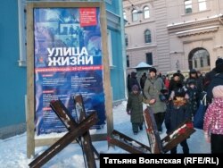 Я была с младшим сыном на "Улице жизни", справедливости ради надо сказать, что там есть один объект, который нам понравился, – это вдоль Дома радио идут такие баннеры с фотографиями, коллажи современной улицы и в нее как бы вмонтирована фотография блокадного времени. Это очень сильное впечатление производит. Да, бомба, да, развалины, да водозабор на ледяной улице, но все равно, конечно, никаких погибших людей на улице. Один раз или два появляются саночки с мертвым человеком, которые везут. Все-таки фотографий, которые бы показывали ужас, а блокада – это ужас, эти фотографии, они есть, я их там не увидела.
