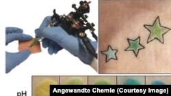 5. Немецкие медики изобрели татуировки, с помощью которых можно следить за состоянием здоровья. В состав чернил для этих татуировок входят биомаркеры, цвет которых меняется в зависимости от биохимических процессов в организме. Так, нанесенные одной из таких красок татуировки становятся зелеными, если в организме повышается уровень глюкозы, что сигнализирует об опасности диабета, а другие – пониженный уровень альбумина, что является признаком нарушения функции печени либо почек.