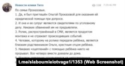 Накануне Дмитрия Проказова и его супругу Ольгу более 3 часов допрашивали в Следственном комитете. Как сообщил по итогам допроса адвокат Дмитрия Проказова Максим Пашков, у следствия "нет претензий" к Дмитрию и Ольге. Об этом же Пашков позже написал в своём телеграме: