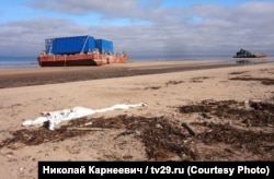Интересно, что на первых опубликованных Радио Свобода снимках понтонов дверцы этих контейнеров закрыты, а на снимках Николая Карнеевича – открыты. Возможно, уже после того, как первый понтон прибило к берегу, военные или сотрудники "Росатома" что-то оттуда забрали: например, документацию или оборудование, ценность и секретность которого были выше, чем риск получить опасную дозу облучения.
