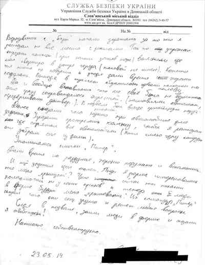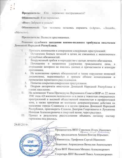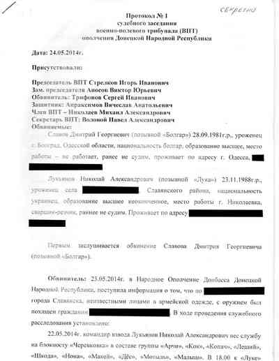 Как ни странно, Гиркин и его люди иногда использовали для протоколов "трибуналов" официальные бланки СБУ, найденные ими в захваченном здании.