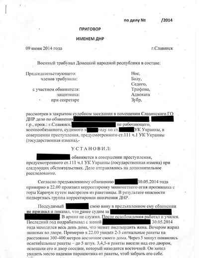• 8 Хотя поддерживаемые Россией сепаратисты объявили независимость от Киева, "трибунал" ссылается на украинский уголовный кодекс в резолютивной части постановления.