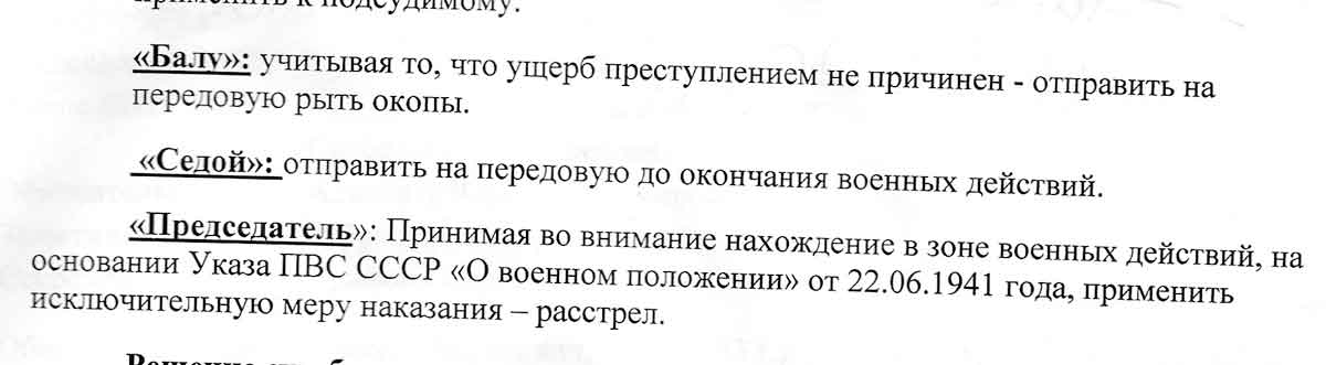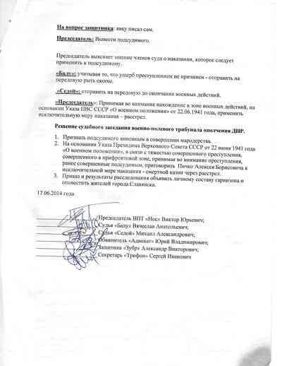 Он требовал признать Пичко виновным, как следует из протокола "трибунала", и привлечь его к ответственности "по всей строгости военного времени".