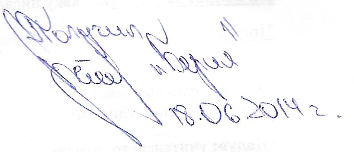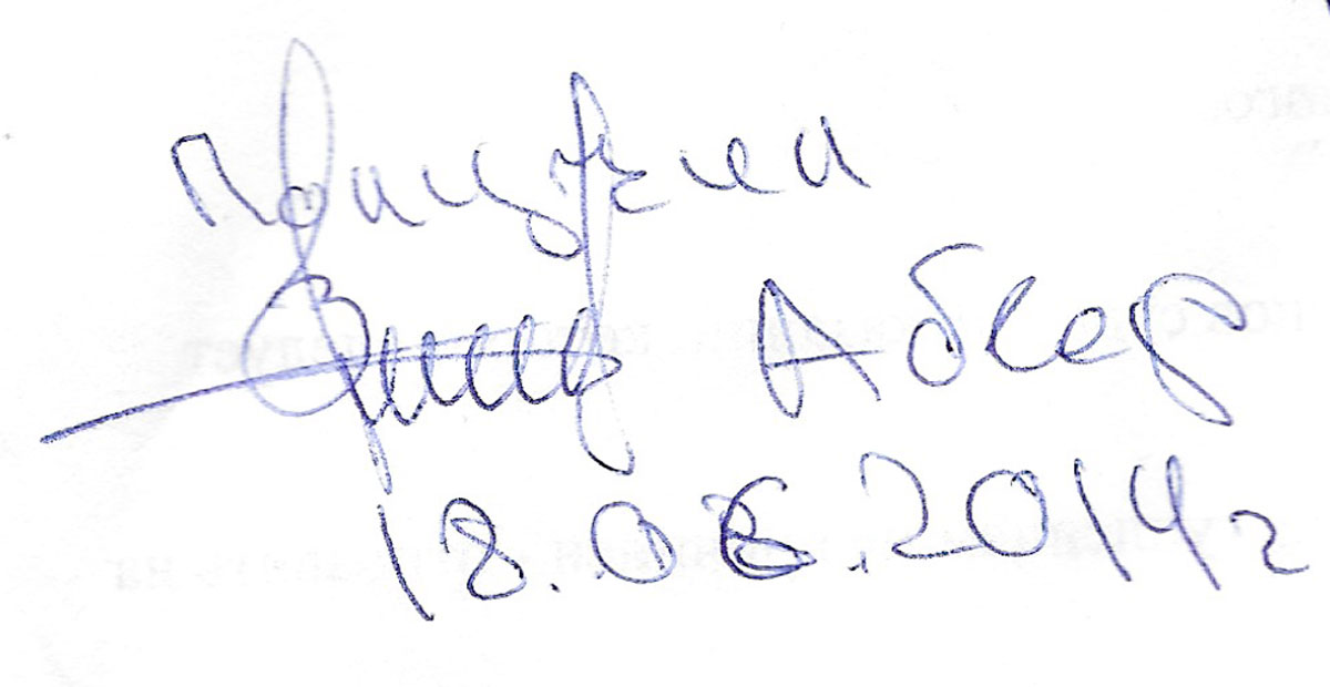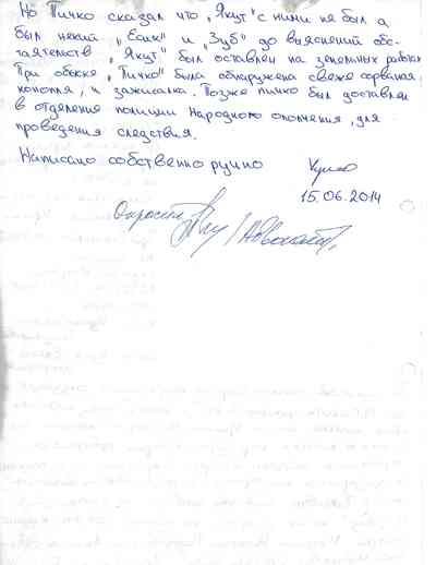 Подпись "Берии" стоит рядом с подписью Здрылюка и видна на обратной стороне последней страницы протокола "трибунала" Пичко, датированной 18 июня 2014 года: согласно надписи, "Берия" "получил" это документ. В выводах проверки украинского МВД указано, что "Берия" получал предписания от "Абвера" на исполнение наказаний.