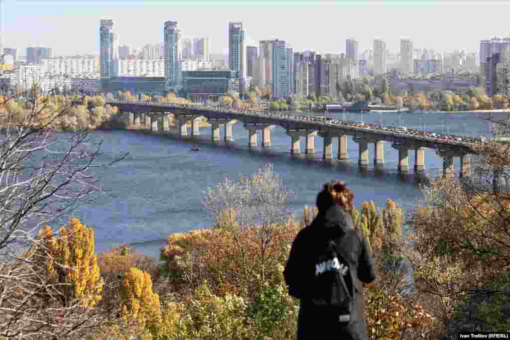 Киевский мост имени Патона: вид на правый берег Днепра, Мать Родину и Киево-Печерскую лавру