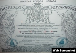 Мы отправили в епархию Новары фотографию сертификата, подаренного Даниловым и датированного 2018 годом, спросив, означает ли это, что он не является подлинным. Ответа на это письмо мы не получили. По указанным на сайте епархии телефонам никто не ответил.