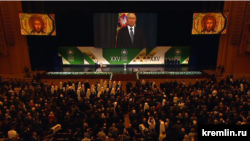 Выступление Путина тоже напомнило комментаторам речи, обычно звучавшие на советских собраниях.