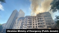 Российские войска утром в воскресенье нанесли ракетные удары по Киеву. Частично разрушен девятиэтажный дом в Шевченковском районе. Есть пострадавшие, сообщается об одном погибшем.