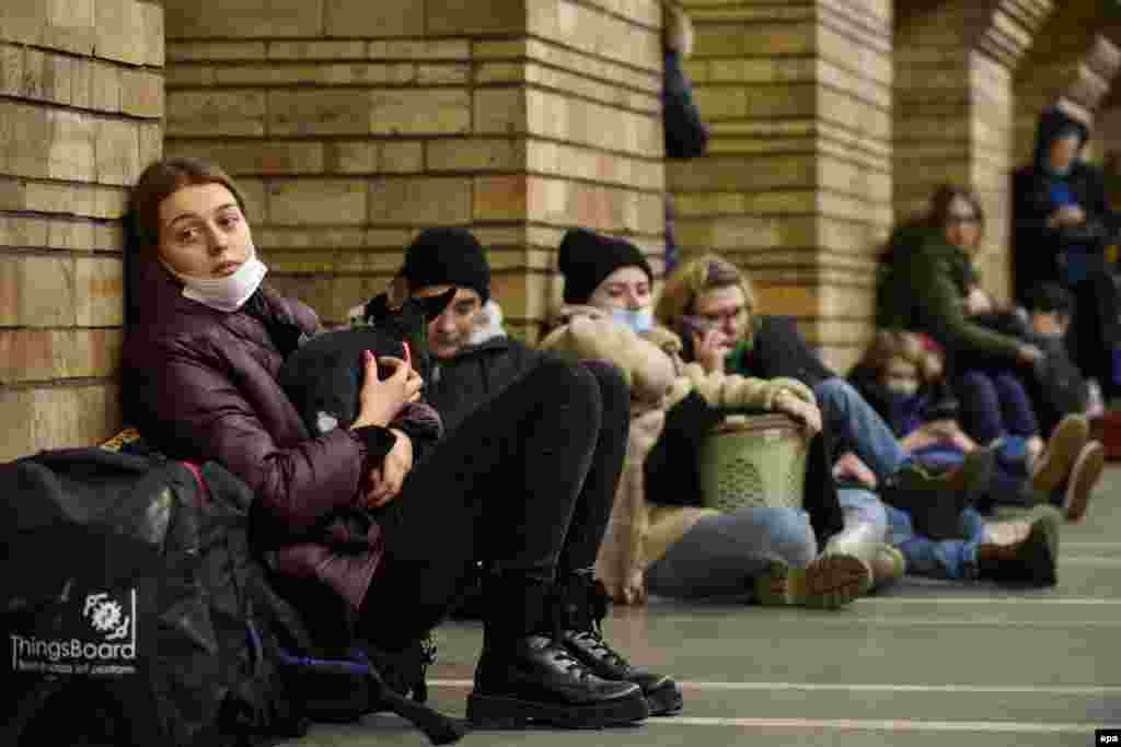 Убежище. Жители Киева прячутся в метро от российских ракет