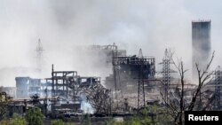 Российские войска обстреливают территорию завода "Азовсталь" в Мариуполе зажигательными снарядами. Это следует из опубликованного в воскресенье в соцсетях видео. Когда оно было снято, неясно. Видео распространяют как российские, так и украинские источники.