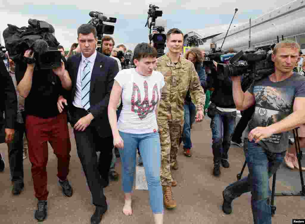 Надежду Савченко обменяли на россиян Александра Александрова и Евгения Ерофеева, которые также уже вернулись в свою страну. Указ об их помиловании был опубликован на сайте президента Украины. На сайте Кремля опубликован указ о помиловании Савченко. По официальной информации, о ее помиловании просили родственники погибших журналистов ВГТРК, в причастности к гибели которых Савченко была признана виновной российским судом и приговорена к 22 годам тюрьмы. Задержанных на востоке Украины Ерофеева и Александрова, которые в своих показаниях говорили, что являются военнослужащими ГРУ России, в Киеве признали виновными в терроризме.