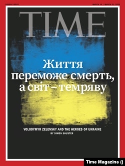 Американский журнал Time поместил на обложку украинский флаг и цитату из выступления президента Украины Владимира Зеленского в Европарламенте. Главная тема выпуска посвящена политику и его участию в обороне страны.